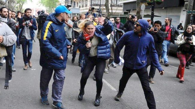 Así fue la agresión a varios periodistas. La gente explotó al grito de «infiltrados, infiltrados» y fue a correr a agresores. Video @A24COM pic.twitter.com/G6lC3dLKDt— Diario Popular 📰 (@populardiario) 1 de octubre de 2017