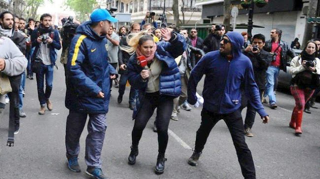 Repitieron el mismo libreto -que huele a operación de los servicios de inteligencia-: gritaron consignas incoherentes, lanzaron bombas de estruendo a la policía y agredieron a fotógrafos y a los móviles periodísticos de C5N, Crónica y América.