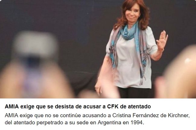 “Consideramos que mantener esa querella es perjudicial para la comunidad en general y afecta en particular a la AMIA en su gestión específica”, dice la carta enviada a Knoblovits. La AMIA planteó que desistir de la querella contra Cristina Kirchner sería “reparar un grave error de la gestión anterior” y permitirá “empezar a tomar distancia de una causa que está en el centro de la famosa grieta que divide a la mayoría de los argentinos, división que por cierto no nos representa”.