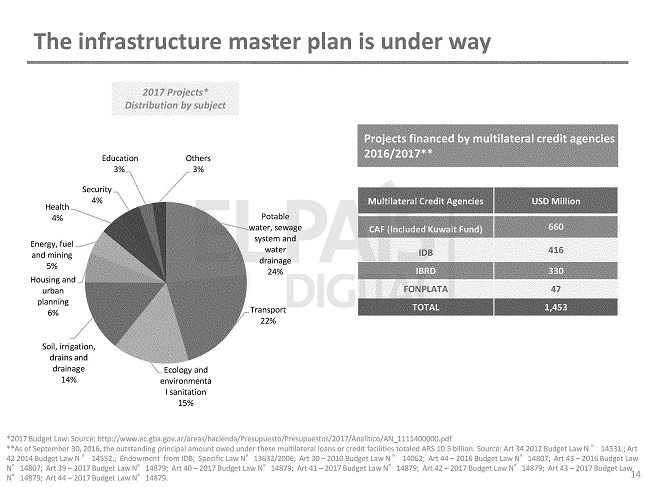 Por otro lado el documento del gobierno provincial clarifica al lector la distribución de los proyectos establecidos en la ley de Presupuesto para 2017, en educación se invertirá solo un 3% de dichos recursos. Esta información va en línea con dos hechos que denunciaron el Frente Gremial Docente bonaerense en 2016: