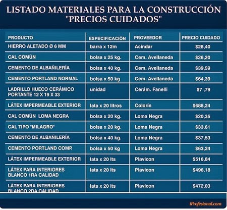 La canasta de precios respectiva comprende un listado de 28 productos (53 precios), involucra a 16 proveedores y justifica casi la mitad del costo de los materiales para la edificación y reforma de los hogares.