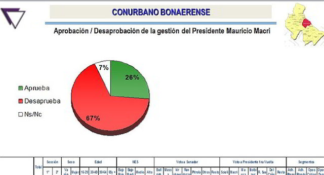 El relevamiento muestra además un fuerte rechazo a la gestión de Cambiemos. El 67% de los habitantes del Conurbano desaprueba al gobierno de Mauricio Macri. El mismo porcentaje obtuvo la pregunta sobre cómo el Presidente está administrando el país.