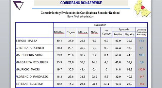 Ya en el tercer puesto se encuentran Esteban Bullrich y Gladys González, con 17,5% y cuarto Florencio Randazzo con solo el 6,9%.