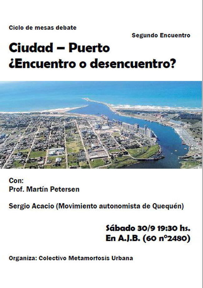 Serán iniciadores del debate el Profesor en Historia Martín Petersen quien nos permitirá desandar la historia del conglomerado urbano y el puerto Quequén y Sergio Acacio parte del Movimiento Autonomista de Quequén.