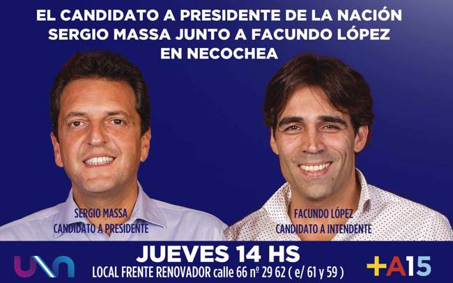 El candidato a presidente de la Nación visitará el día de mañana el distrito de Necochea y recorrerá la ciudad junto al candidato a intendente Dr. Facundo López.