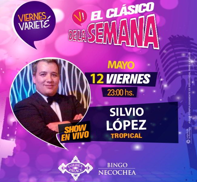 Silvio, es un completo músico y cantante que ha incursionado en varios géneros destacándose en la percusión y esta vez te invita a compartir su pasión: la música tropical. Vas a poder cantar, bailar y disfrutar de todos los servicios de Bingo Golden Palace en esta noche de Viernes Varieté organizada para que empieces el fin de semana junto a tus amigos.
