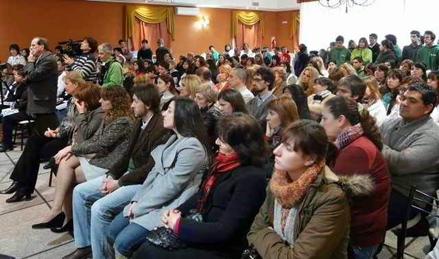 En Lobería, el Acto Central se realizó en el salón La Casona del Prado Español, donde el Ministro hizo entrega junto a la intendente Diana Argüello de Aulas Digitales y material de lectura para establecimientos educativos del Distrito.