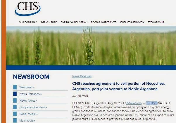 BUENOS AIRES, Argentina, 18 de agosto de 2014 /PRNewswire/ — CHS Inc. (NASDAQ: CHSCP), la mayor compañía propiedad de agricultores de América Norte y un negocio global en energía, granos y alimentos, anunció hoy que ha llegado a un acuerdo para permitir a Noble Argentina S.A. que adquiera una porción de la participación de CHS en una empresa conjunta para el desarrollo de una terminal exportadora en Necochea, provincia de Buenos Aires, Argentina.
