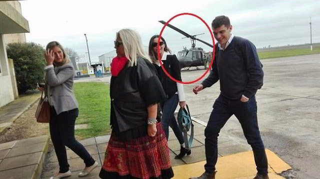 Hasta el momento todo sería lógico y coherente, pero en la era de las redes sociales una foto puede revelar muchas verdades. Carrió fue fotografiada mientras bajaba de un helicóptero militar en el recorrido que hizo por Santa Fe.