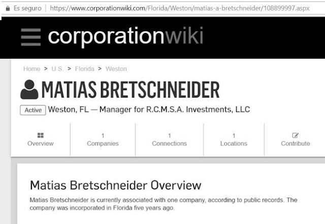 Según los registros, la empresa R.C.M.S.A. Investments fue inscripta por el empresario local Matias Bretschneider y sus socios son el propio Bretschneider y Ricardo Marmetto.