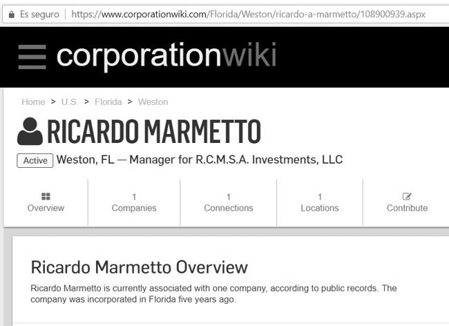 El domicilio denunciado es 2721 Executive Park Drive Suite 4, Weston, Florida 33331. Weston es una ciudad ubicada en el condado de Broward en el estado estadounidense de Florida, a 35 millas al noroeste de Miami.