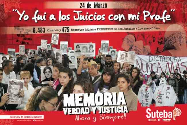 El SUTEBA Necochea invita a la inauguración del «Espacio de la Memoria de los Trabajadores», donde instalaremos una muestra permanente de compañeros dirigentes de CTERA desaparecidos y asesinados por la sangrienta dictadura militar que se instalo en la Argentina el 24 de Marzo de 1976, estos compañeros estarán en el recuerdo junto a nuestros 22 detenidos desaparecidos necochenses.