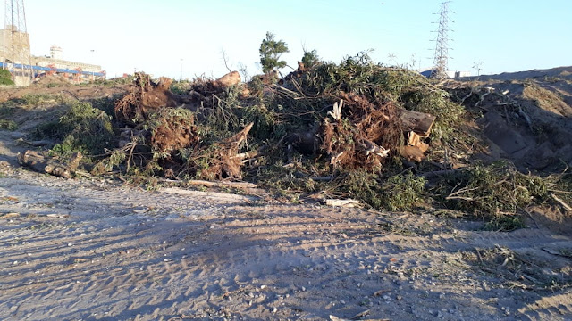 Del lado de Necochea, el Consorcio de Gestión del Puerto Quequén eliminó la arboleda lindera del terreno de “Puerto-Ciudad” sobre avenida 10 donde se desarrollaron varias festividades. Los grandes ejemplares de Eucaliptus retirados tenían decenas de años. Se hizo un importante movimiento de suelo, a raíz de la llegada de los barcos que traerán las aspas de los molinos eólicos a emplazarse en el parque eólico que se está construyendo en las playas del sur.