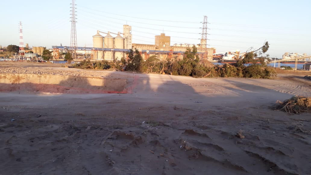 Del lado de Necochea, el Consorcio de Gestión del Puerto Quequén eliminó la arboleda lindera del terreno de “Puerto-Ciudad” sobre avenida 10 donde se desarrollaron varias festividades. Los grandes ejemplares de Eucaliptus retirados tenían decenas de años. Se hizo un importante movimiento de suelo, a raíz de la llegada de los barcos que traerán las aspas de los molinos eólicos a emplazarse en el parque eólico que se está construyendo en las playas del sur.