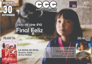 El viernes también, habrá un nuevo ciclo Cine del Centro Cultural. En esta oportunidad, se proyectarán dos películas: a las 19:00 horas, La boda de Rosa. Comedia. Dirigida por Icíar Bollaín. Con Candela Peña. (Premio del jurado del Festival de Málaga, ganadora del premio Feroz a mejor comedia y ganadora de dos Goyas: mejor canción original y actriz de reparto). A las 20:45: Lunana, un yak en la escuela. Opera prima de Pawo Choyning que, mostrando al mundo las peculiaridades de uno de los lugares más remotos de Bután, obtuvo la primera nominación a los Oscar en la historia del país asiático.