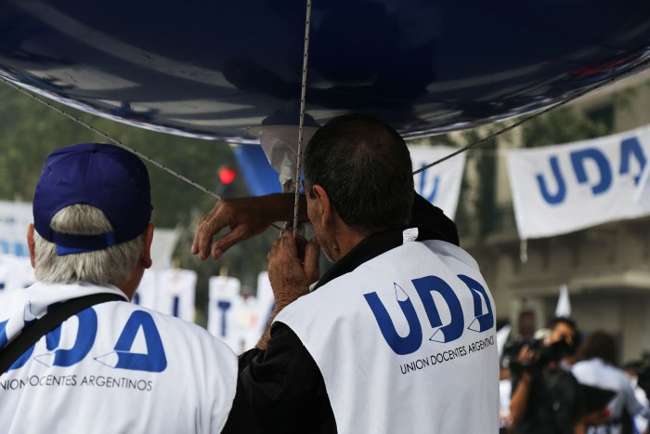 Sergio Romero, secretario general de la Unión de Docentes Argentinos (UDA): “Estamos todas las organizaciones sin fisuras. Nos vamos a fortalecer en la lucha. ¿Qué es esto de tirarle la responsabilidad de las provincias? Propio de gobiernos liberales. Aparecen los gobernadores con el doble juego – la mayoría alcahuetes de la gestión macrista – que nos ofrecen el 18% a los trabajadores con una inflación que ni el propio gobierno se la puede puede creer!. Los más optimistas hablan de una inflación del 25%, sin dejar de pasar que el año pasado la inflación fue del 42% y el salario no se pudo recuperar“.