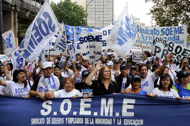 “Hay muchas medidas extorsivas por parte del gobierno” consideró la Secretaria Adjunta del Sindicato de Obreros y Empleados de Minoridad y Educación (SOEME), Susana Mariño, y enumeró los descuentos de salario, la presión de perder el puesto de trabajo, la violencia y últimamente “los aprietes a los trabajadores”.