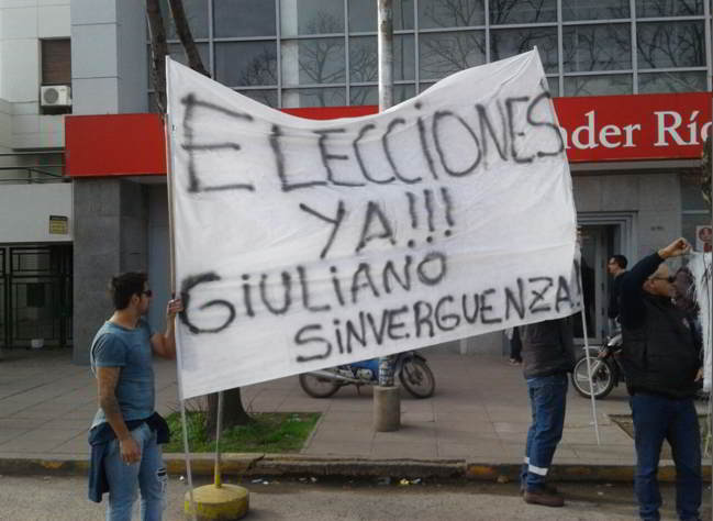 Expresaron su descontento con las autoridades del Ministerio de Trabajo y del Banco Santander Río que autorizan maniobras irregulares con el secretario general actual, Alfredo Giuliano.