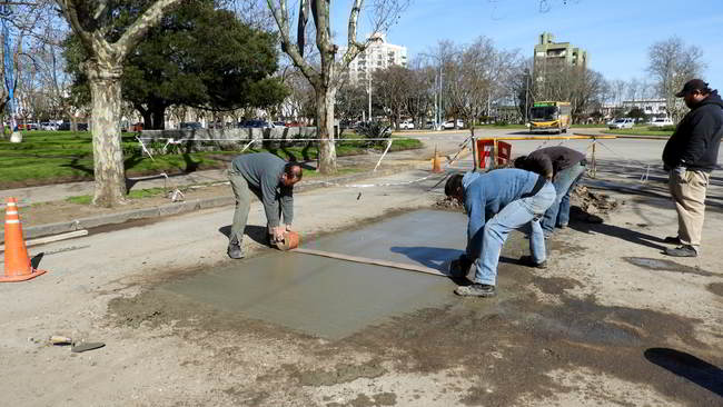 Para efectuar esta reparación, en un tramo de unos 4 metros de largo por dos de ancho, “se retiró un viejo parche de carpeta asfáltica que había en el lugar, se realizó el suelo cemento y se terminó hormigonado con H30”, detalló Ariel Rodríguez, a cargo de la cuadrilla actuante.
