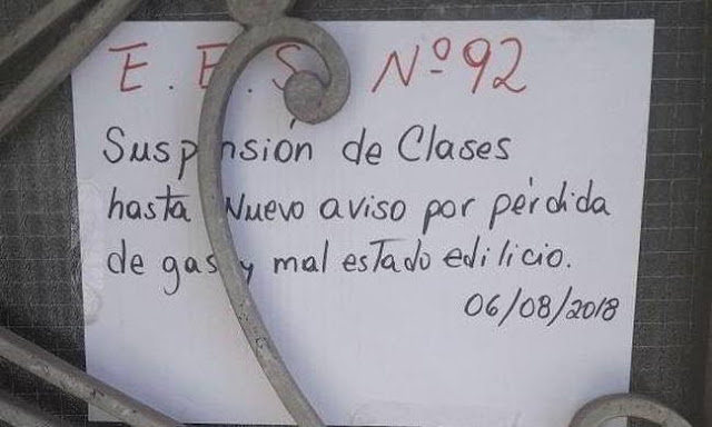 “Eso es lo que tenemos relevado hasta el momento, pero puede haber más escuelas que suspendan las clases”, aseguró la secretaria adjunta de Suteba, Susana Aranguren, al portal local Qué Digital, y agregó que todos los establecimientos suspendieron las actividades por escape de gas y falta de calefacción.