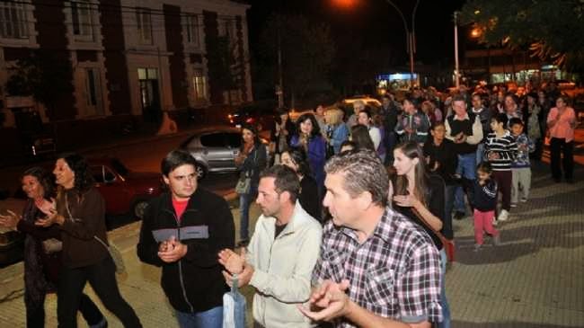 Una veintena de vecinos necochenses se manifestaron en los momentos previos a que el gobernador ingresara a la cena, por segunda vez en muy poco tiempo y en medio de una tirante relación interna con el kirchnerismo, después de su aparición en la inauguración del Espacio Clarín.