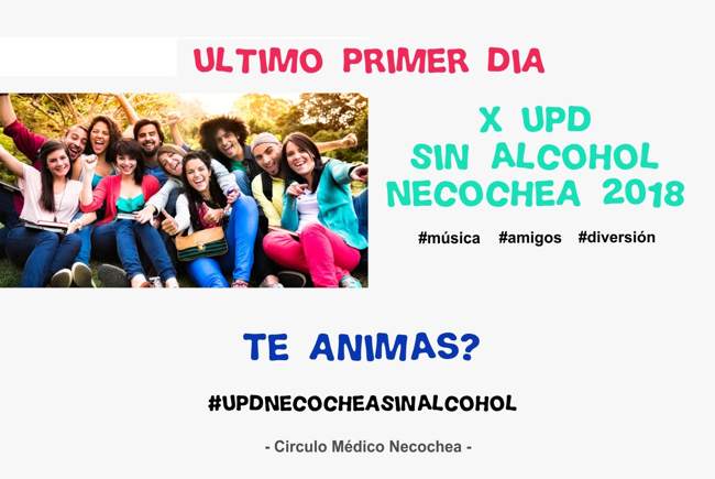 En el marco del proyecto de concientización respecto de la problemática del consumo de alcohol en los jóvenes, los integrantes del Círculo Médico de Necochea lanzan una campaña de difusión con el objetivo de promover la Fiesta del Ultimo Primer Día de Clases SIN INGESTA de alcohol.