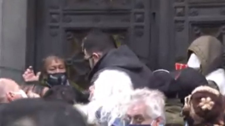 Momentos de tensión se vivieron hoy minutos antes de las 17 en una de las puertas del Congreso cuando un grupo de manifestantes intentó ingresar por la fuerza.