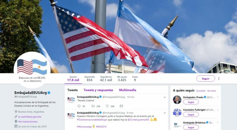 UN TUIT CONTRA CRISTINA: LA EMBAJADA DE EEUU Y UNA SEÑAL DE INJERENCIA EN LA POLITICA ARGENTINA