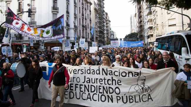 La convocatoria de hoy, cuya consigna es «Marcha Nacional en defensa de la Educación y la Universidad Pública», plantea al Gobierno una mejora del 40% en el salario docente, la ampliación del presupuesto para la Educación Superior, la implementación del Boleto Educativo, y becas para los alumnos, entre otras reivindicaciones.