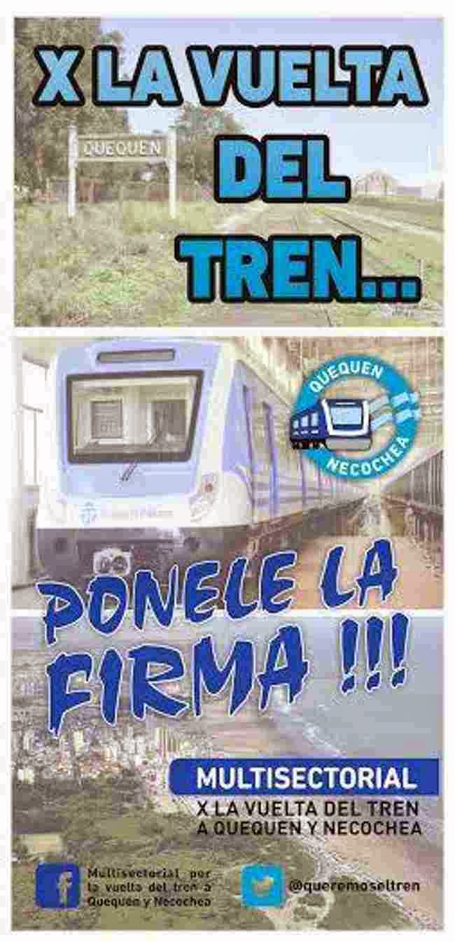 VECINOS MARCHARAN POR LA VUELTA DEL TREN A NECOCHEA Y QUEQUEN