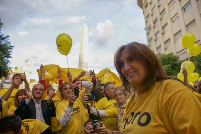 Con un breve acto al lado del Obelisco, Gabriela Michetti lanzó su campaña para la jefatura de gobierno porteño. Además de decir unas palabras, la “rebelde” del macrismo repartió chupetines “Pico dulce” a los presentes, acompañada por los referentes del PRO Hernán Lombardi, Guillermo Montenegro y Daniel Chaín.