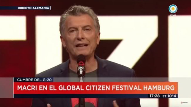 Quizás soñando ser una estrella de rock como su admirado y fallecido líder de Queen, Freddie Mercury, el presidente estuvo ayer en el Global Citizen Festival llevado a cabo en Hamburgo, Alemania, donde se desarrolla la reunión del G20.