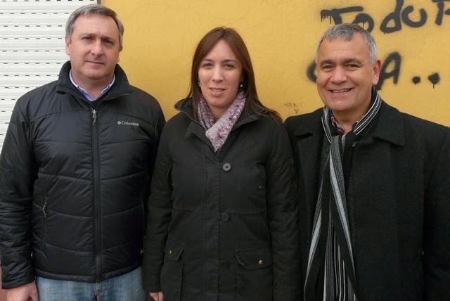 MARIA EUGENIA VIDAL, FLANQUEADA POR LOS DIRIGENTES DEL PRO LOCAL, LEONARDO RUGGIERO Y GUSTAVO CASAS
