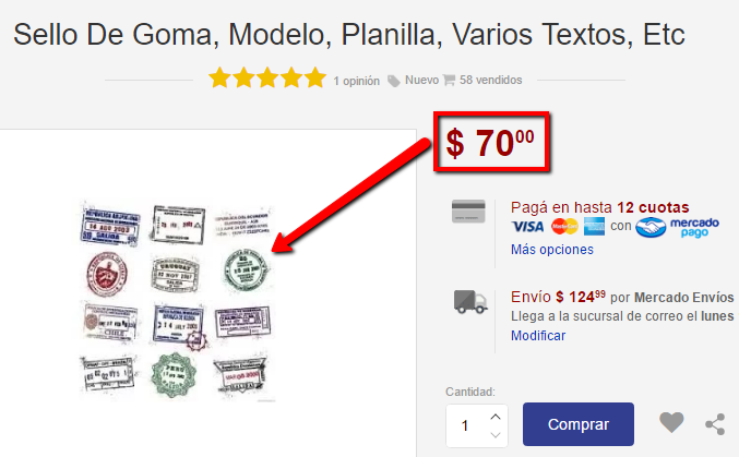 Si entramos a Mercado Libre vemos que cualquier hijo de vecino puede adquirir un simple sello de goma a precio minorista por $70/sello. Como la licitación es por un total de 11.100 sellos uno pensaría que la compra al por mayor asegura un precio por unidad más bajo, pero Vidal pagó $260 cada sello.