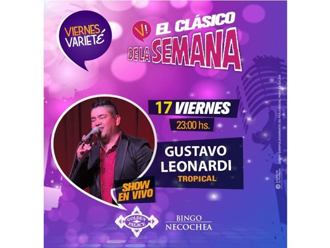Esta noche, a partir de las 23hs, te invitamos a otro increíble show en vivo que propone nuestro ciclo musical Viernes Varieté. Vuelve Gustavo Leonardi a nuestro escenario con la energía, carisma y buena onda que lo caracteriza.