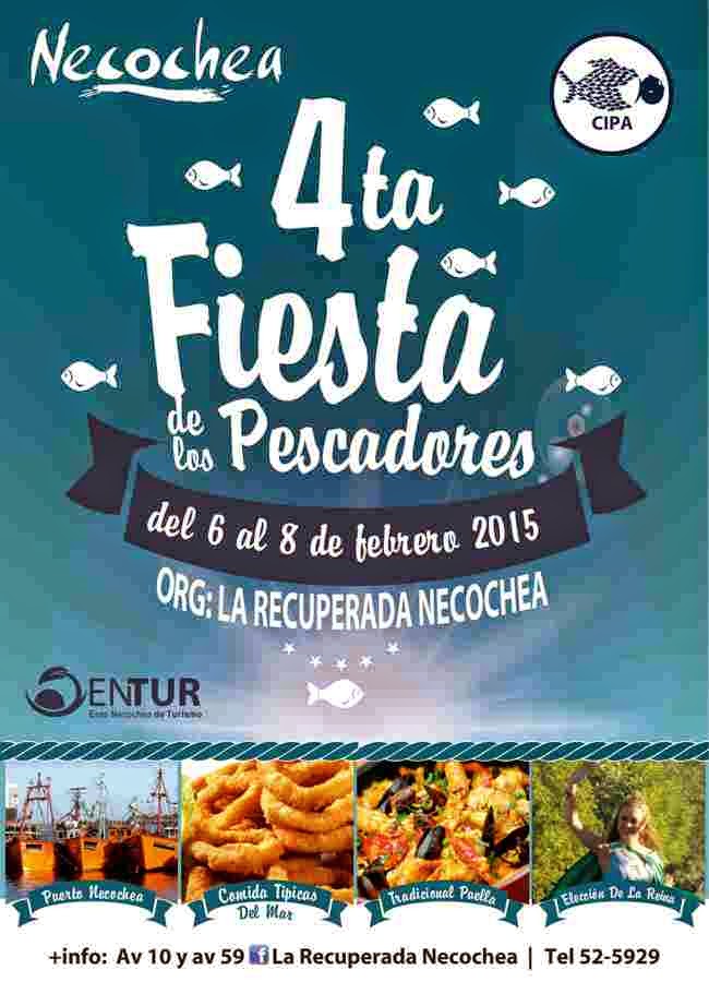 Desde el viernes 6 y hasta el domingo 8 de febrero tendrá lugar en el puerto local la 4ª Fiesta de los Pescadores Necochea 2015, en avenida 10 y de 59 a 63, organizada por la Cooperativa de Trabajo La Recuperada.