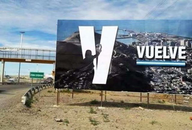 Ubicada en la intersección de las rutas 3 y 39. Comodoro Rivadavia. Una silueta de CFK. Una sola palabra. Vuelve.
