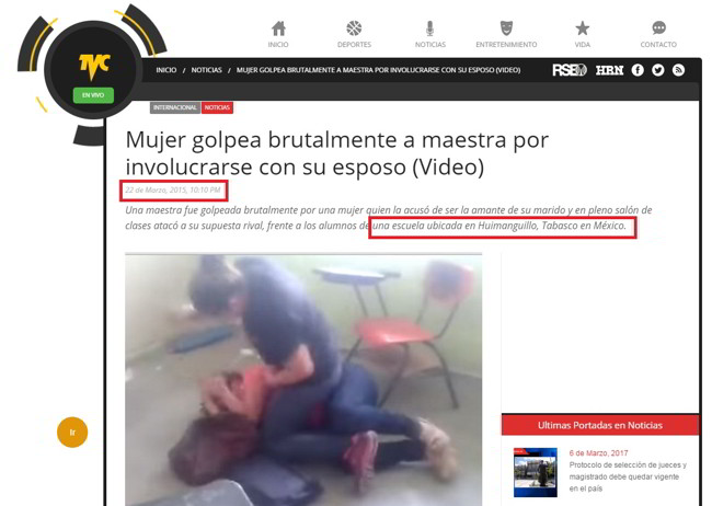 El sitio web TELEVICENTRO.HM da cuenta de un episodio violento de índole privada en una escuela ubicada en Huimanguillo, Tabasco en la República de México, el 22 de marzo de 2015. Otra mentira más y van…